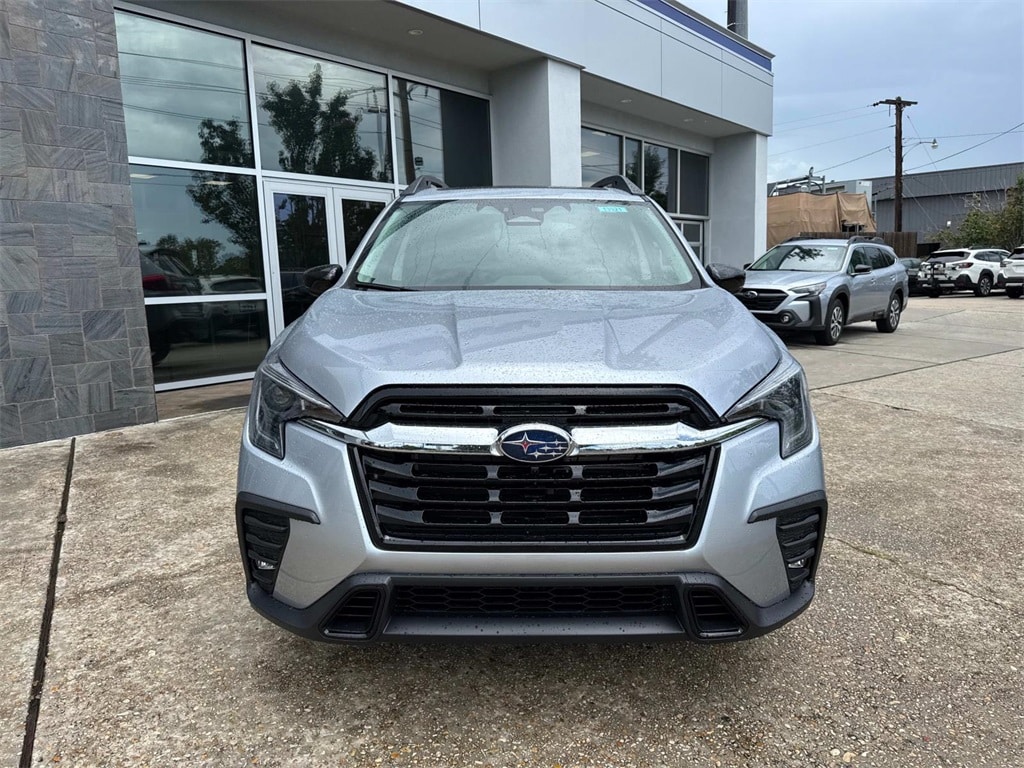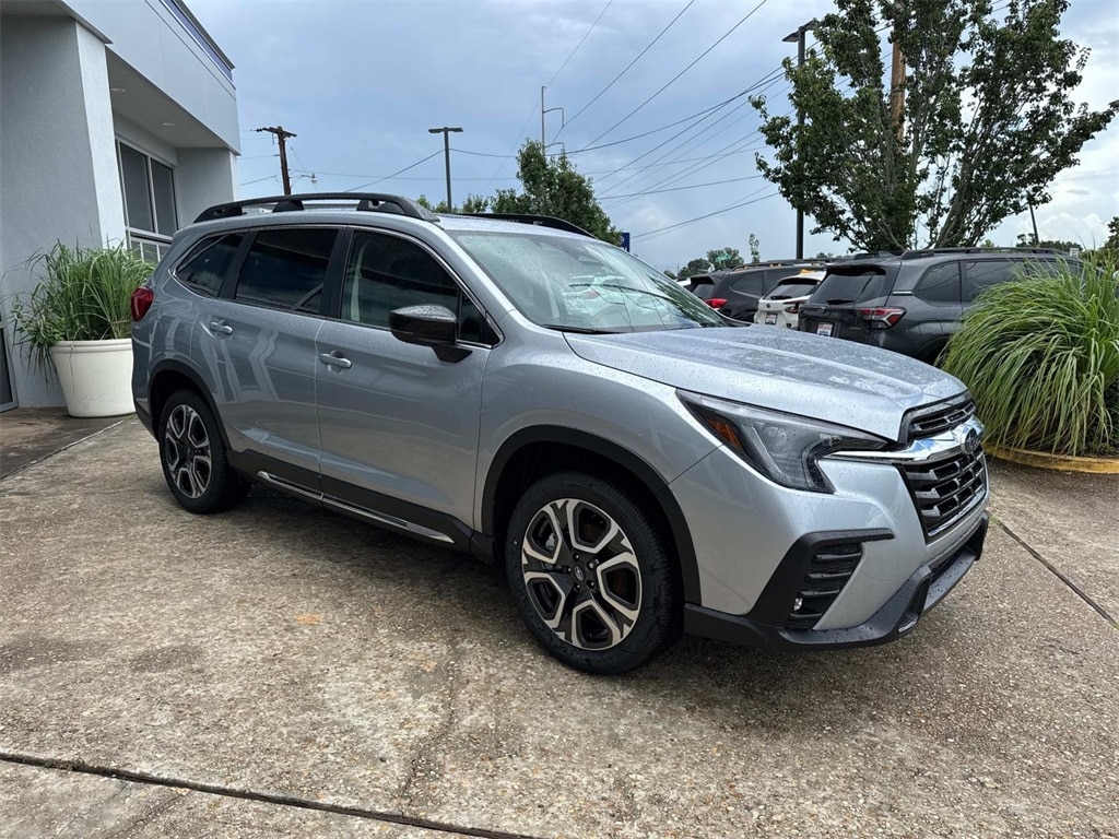 Ice Silver 2025 Subaru Ascent Limited AWD Lineartronic CVT 2.4L 4-Cylinder DOHC 16V 14 Speakers, 3rd row seats: bench, 4-Wheel Disc Brakes, ABS brakes, Air Conditioning, Alloy wheels, AM/FM radio: SiriusXM, Auto High-beam Headlights, Auto-dimming Rear-View mirror, Automatic temperature control, Brake assist, Bumpers: body-color, Compass, Delay-off headlights, Driver door bin, Driver vanity mirror, Dual front impact airbags, Dual front side impact airbags, Electronic Stability Control, Emergency communication system: STARLINK Safety and Security (Subscription Required), Exterior Parking Camera Rear, Four wheel independent suspension, Front anti-roll bar, Front Bucket Seats, Front Center Armrest, Front dual zone A/C, Front fog lights, Front reading lights, Fully automatic headlights, Garage door transmitter: HomeLink, harman/kardon® Speakers, Heated door mirrors, Heated Front Bucket Seats, Heated front seats, Heated rear seats, Heated steering wheel, Illuminated entry, Knee airbag, Leather Shift Knob, Leather steering wheel, Low tire pressure warning, Memory seat, Navigation System, Occupant sensing airbag, Outside temperature display, Overhead airbag, Overhead console, Panic alarm, Passenger door bin, Passenger vanity mirror, Perforated Leather-Trimmed Upholstery, Power door mirrors, Power driver seat, Power Liftgate, Power moonroof, Power passenger seat, Power steering, Power windows, Radio data system, Radio: Subaru STARLINK 11.6" Multimedia Nav System, Rear air conditioning, Rear anti-roll bar, Rear reading lights, Rear window defroster, Rear window wiper, Reclining 3rd row seat, Remote keyless entry, Security system, Speed control, Speed-sensing steering, Split folding rear seat, Spoiler, STARLINK/Apple CarPlay/Android Auto, Steering wheel mounted audio controls, Tachometer, Telescoping steering wheel, Tilt steering wheel, Traction control, Trip computer, Turn signal indicator mirrors, Variably intermittent wipers, Wheels: 20" x 7.5 J Dk Gray Alloy w/Machine Finish.