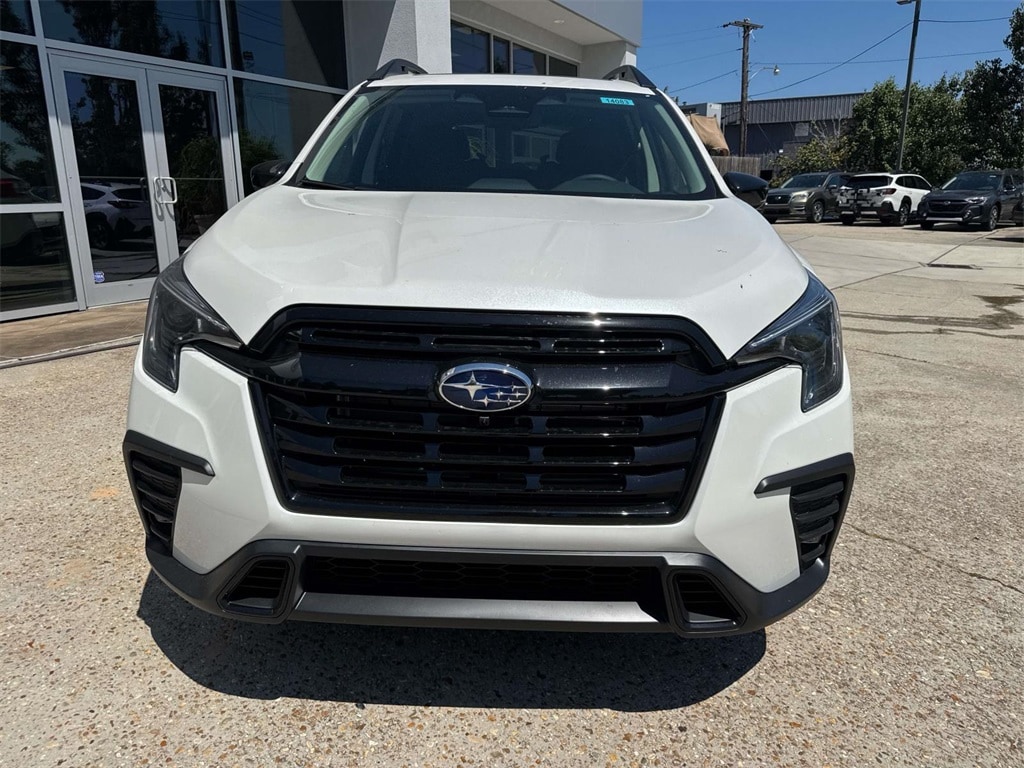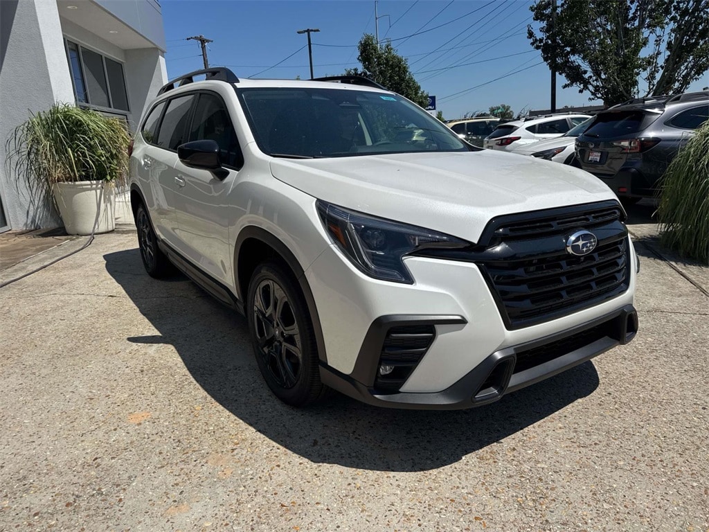 White 2025 Subaru Ascent Onyx Edition Touring AWD Lineartronic CVT 2.4L 4-Cylinder DOHC 16V 14 Speakers, 3rd row seats: bench, 4-Wheel Disc Brakes, ABS brakes, Air Conditioning, Alloy wheels, AM/FM radio: SiriusXM, Auto High-beam Headlights, Auto-dimming Rear-View mirror, Automatic temperature control, Brake assist, Bumpers: body-color, Compass, Delay-off headlights, Driver door bin, Driver vanity mirror, Dual front impact airbags, Dual front side impact airbags, Electronic Stability Control, Emergency communication system: STARLINK Safety and Security (Subscription Required), Exterior Parking Camera Rear, Four wheel independent suspension, Front anti-roll bar, Front Bucket Seats, Front Center Armrest, Front dual zone A/C, Front fog lights, Front reading lights, Fully automatic headlights, Garage door transmitter: HomeLink, harman/kardon® Speakers, Heated & Ventilated Front Bucket Seats, Heated door mirrors, Heated front seats, Heated rear seats, Heated steering wheel, HVAC memory, Illuminated entry, Knee airbag, Leather Shift Knob, Leather steering wheel, Low tire pressure warning, Memory seat, Navigation System, Occupant sensing airbag, Outside temperature display, Overhead airbag, Overhead console, Panic alarm, Passenger door bin, Passenger vanity mirror, Perforated Nappa Leather-Trimmed Upholstery, Power door mirrors, Power driver seat, Power Liftgate, Power moonroof, Power passenger seat, Power steering, Power windows, Radio data system, Radio: Subaru STARLINK 11.6" Multimedia Nav System, Rain sensing wipers, Rear air conditioning, Rear anti-roll bar, Rear reading lights, Rear window defroster, Rear window wiper, Reclining 3rd row seat, Remote keyless entry, Security system, Speed control, Speed-sensing steering, Split folding rear seat, Spoiler, STARLINK/Apple CarPlay/Android Auto, Steering wheel mounted audio controls, Tachometer, Telescoping steering wheel, Tilt steering wheel, Traction control, Trip computer, Turn signal indicator mirrors, Variably intermittent wipers, Ventilated front seats, Wheels: 20" x 7.5 J Aluminum Alloy w/Black Finish.