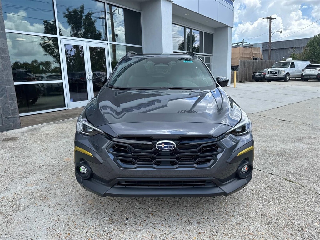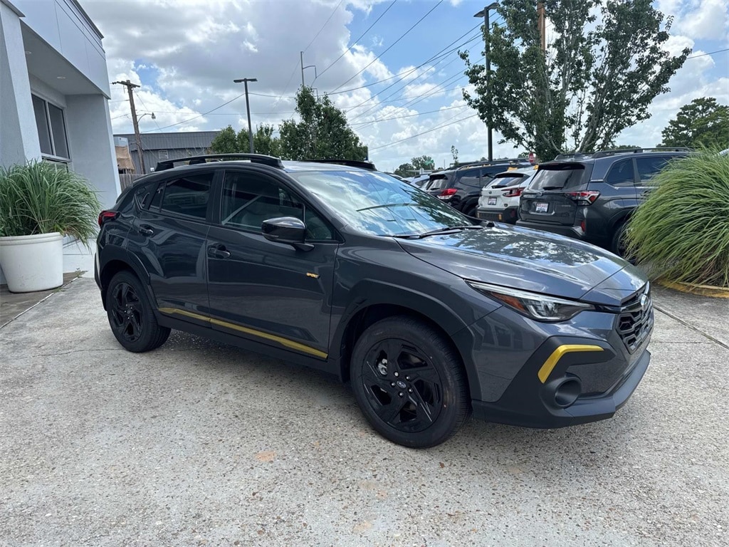 Gray 2025 Subaru Crosstrek Sport AWD Lineartronic CVT 2.5L 4-Cylinder DOHC 16V 4-Wheel Disc Brakes, 6 Speakers, ABS brakes, Air Conditioning, Alloy wheels, AM/FM radio: SiriusXM, Anti-whiplash front head restraints, Auto High-beam Headlights, Automatic temperature control, Brake assist, Bumpers: body-color, Driver door bin, Driver vanity mirror, Dual front impact airbags, Dual front side impact airbags, Electronic Stability Control, Emergency communication system: STARLINK Safety and Security (Subscription Required), Exterior Parking Camera Rear, Four wheel independent suspension, Front anti-roll bar, Front Bucket Seats, Front Center Armrest, Front dual zone A/C, Front fog lights, Front reading lights, Fully automatic headlights, Heated door mirrors, Heated Front Bucket Seats, Heated front seats, Illuminated entry, Knee airbag, Leather Shift Knob, Leather steering wheel, Low tire pressure warning, Occupant sensing airbag, Outside temperature display, Overhead airbag, Overhead console, Panic alarm, Passenger door bin, Passenger vanity mirror, Power door mirrors, Power steering, Power windows, Radio data system, Radio: Subaru STARLINK 11.6" Multimedia Plus Sys, Rear anti-roll bar, Rear seat center armrest, Rear window defroster, Rear window wiper, Remote keyless entry, Security system, Speed control, Speed-sensing steering, Split folding rear seat, Spoiler, Sport Cloth Upholstery, STARLINK/Apple CarPlay/Android Auto, Steering wheel mounted audio controls, Tachometer, Telescoping steering wheel, Tilt steering wheel, Traction control, Trip computer, Turn signal indicator mirrors, Variably intermittent wipers, Wheels: 18" x 7.0" J Dark Gray Aluminum-Alloy.