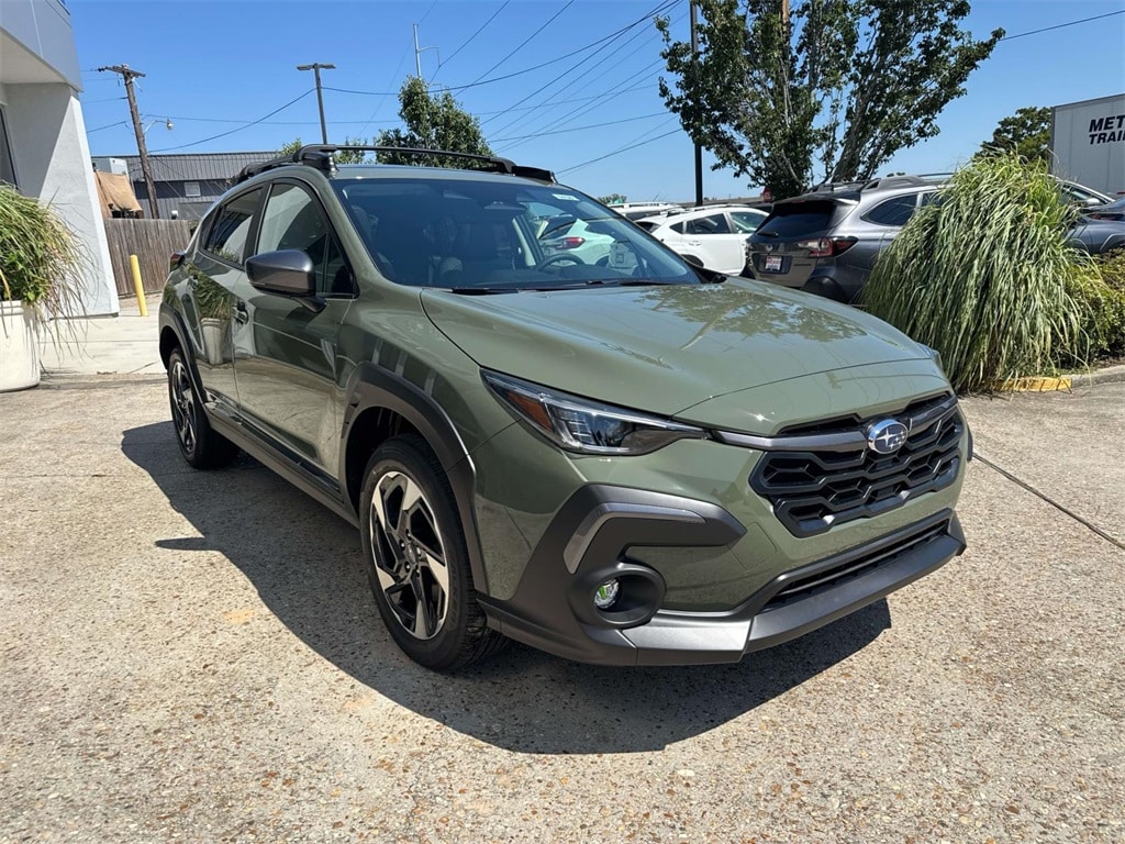 New Price! Alpine Green 2025 Subaru Crosstrek Limited AWD Lineartronic CVT 2.5L 4-Cylinder DOHC 16V 4-Wheel Disc Brakes, 6 Speakers, ABS brakes, Aero Crossbar Set, Air Conditioning, All-Weather Floor Liners, Alloy wheels, AM/FM radio: SiriusXM, Anti-whiplash front head restraints, Auto High-beam Headlights, Auto-Dimming Exterior Mirror w/Approach Light, Auto-Dimming Mirror w/Compass & HomeLink, Automatic temperature control, Brake assist, Bumpers: body-color, Crosstrek Mirror Package, Driver door bin, Driver vanity mirror, Dual front impact airbags, Dual front side impact airbags, Electronic Stability Control, Emergency communication system: STARLINK Safety and Security (Subscription Required), Exterior Parking Camera Rear, Footwell Illumination Kit, Four wheel independent suspension, Front anti-roll bar, Front Bucket Seats, Front Center Armrest, Front dual zone A/C, Front fog lights, Front reading lights, Fully automatic headlights, harman/kardon Audio & Power Moonroof, harman/kardon Surround Sound Speaker System, Heated door mirrors, Heated Front Bucket Seats, Heated front seats, Illuminated entry, Knee airbag, Leather Shift Knob, Leather steering wheel, Leather-Trimmed Upholstery, LED Upgrade, Low tire pressure warning, Occupant sensing airbag, Outside temperature display, Overhead airbag, Overhead console, Panic alarm, Passenger door bin, Passenger vanity mirror, Power door mirrors, Power driver seat, Power Moonroof, Power steering, Power windows, Radio data system, Radio: Subaru STARLINK 11.6" Multimedia Plus Sys, Rear anti-roll bar, Rear seat center armrest, Rear window defroster, Rear window wiper, Remote keyless entry, Security system, Side Sill Plates, Speed control, Speed-sensing steering, Split folding rear seat, Spoiler, STARLINK/Apple CarPlay/Android Auto, Steering wheel mounted audio controls, Tachometer, Telescoping steering wheel, Tilt steering wheel, Traction control, Trip computer, Turn signal indicator mirrors, Variably intermittent wipers, Wheels: 18" x 7.0" J Machine Finish Aluminum-Alloy.