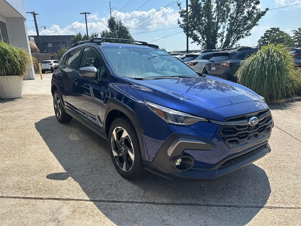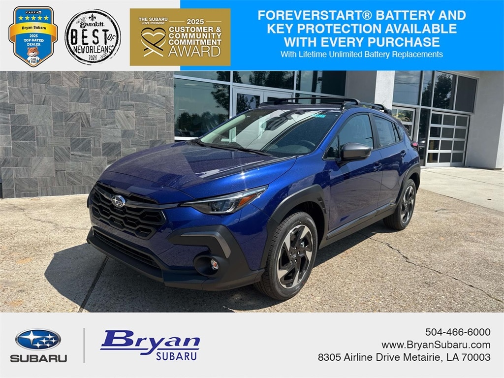 Blue 2025 Subaru Crosstrek Limited AWD Lineartronic CVT 2.5L 4-Cylinder DOHC 16V 4-Wheel Disc Brakes, 6 Speakers, ABS brakes, Air Conditioning, Alloy wheels, AM/FM radio: SiriusXM, Anti-whiplash front head restraints, Auto High-beam Headlights, Automatic temperature control, Brake assist, Bumpers: body-color, Driver door bin, Driver vanity mirror, Dual front impact airbags, Dual front side impact airbags, Electronic Stability Control, Emergency communication system: STARLINK Safety and Security (Subscription Required), Exterior Parking Camera Rear, Four wheel independent suspension, Front anti-roll bar, Front Bucket Seats, Front Center Armrest, Front dual zone A/C, Front fog lights, Front reading lights, Fully automatic headlights, Heated door mirrors, Heated Front Bucket Seats, Heated front seats, Illuminated entry, Knee airbag, Leather Shift Knob, Leather steering wheel, Leather-Trimmed Upholstery, Low tire pressure warning, Occupant sensing airbag, Outside temperature display, Overhead airbag, Overhead console, Panic alarm, Passenger door bin, Passenger vanity mirror, Power door mirrors, Power driver seat, Power steering, Power windows, Radio data system, Radio: Subaru STARLINK 11.6" Multimedia Plus Sys, Rear anti-roll bar, Rear seat center armrest, Rear window defroster, Rear window wiper, Remote keyless entry, Security system, Speed control, Speed-sensing steering, Split folding rear seat, Spoiler, STARLINK/Apple CarPlay/Android Auto, Steering wheel mounted audio controls, Tachometer, Telescoping steering wheel, Tilt steering wheel, Traction control, Trip computer, Turn signal indicator mirrors, Variably intermittent wipers, Wheels: 18" x 7.0" J Machine Finish Aluminum-Alloy.