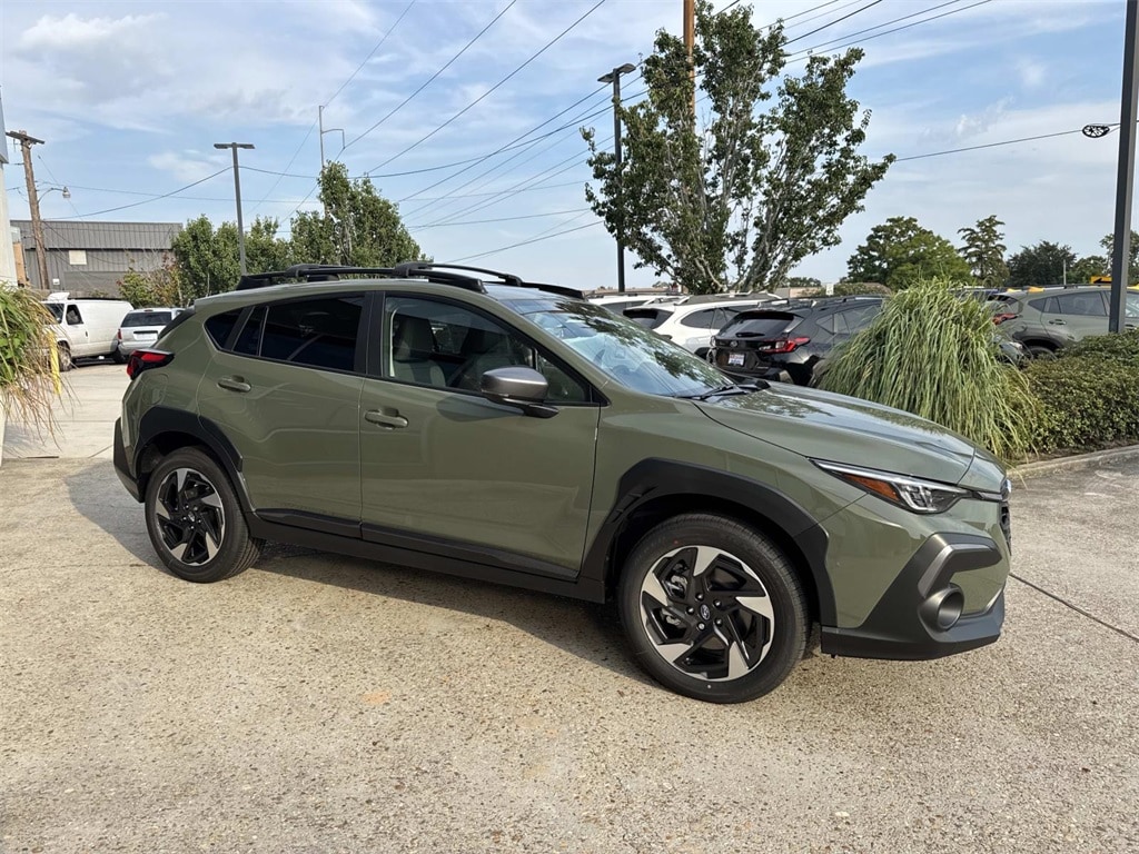 Green 2025 Subaru Crosstrek Limited AWD Lineartronic CVT 2.5L 4-Cylinder DOHC 16V 4-Wheel Disc Brakes, 6 Speakers, ABS brakes, Air Conditioning, Alloy wheels, AM/FM radio: SiriusXM, Anti-whiplash front head restraints, Auto High-beam Headlights, Automatic temperature control, Brake assist, Bumpers: body-color, Driver door bin, Driver vanity mirror, Dual front impact airbags, Dual front side impact airbags, Electronic Stability Control, Emergency communication system, Exterior Parking Camera Rear, Four wheel independent suspension, Front anti-roll bar, Front Bucket Seats, Front Center Armrest, Front dual zone A/C, Front fog lights, Front reading lights, Fully automatic headlights, Heated door mirrors, Heated Front Bucket Seats, Heated front seats, Illuminated entry, Knee airbag, Leather Shift Knob, Leather steering wheel, Leather-Trimmed Upholstery, Low tire pressure warning, Occupant sensing airbag, Outside temperature display, Overhead airbag, Overhead console, Panic alarm, Passenger door bin, Passenger vanity mirror, Power door mirrors, Power driver seat, Power steering, Power windows, Radio data system, Radio: Subaru 11.6" Multimedia Plus System, Rear anti-roll bar, Rear seat center armrest, Rear window defroster, Rear window wiper, Remote keyless entry, Security system, Speed control, Speed-sensing steering, Split folding rear seat, Spoiler, Steering wheel mounted audio controls, Tachometer, Telescoping steering wheel, Tilt steering wheel, Traction control, Trip computer, Turn signal indicator mirrors, Variably intermittent wipers, Wheels: 18" x 7.0" J Machine Finish Aluminum-Alloy.