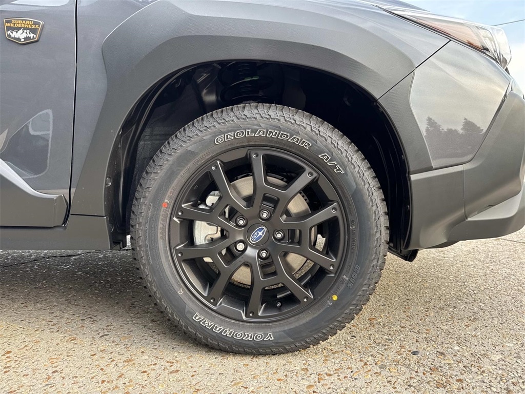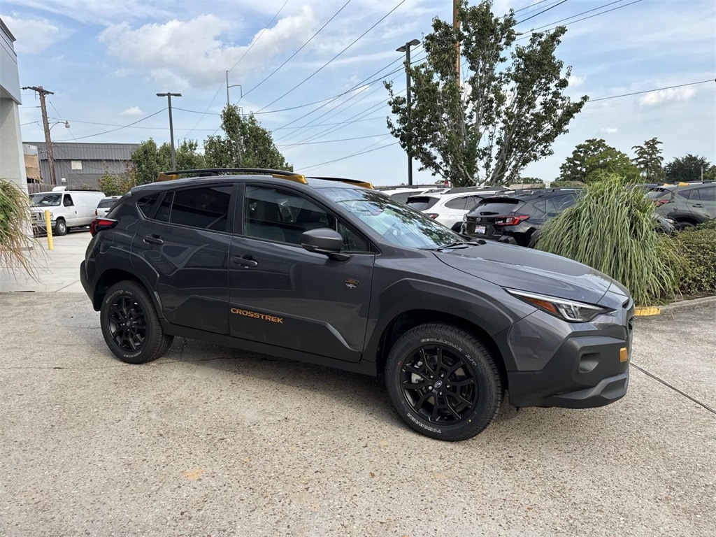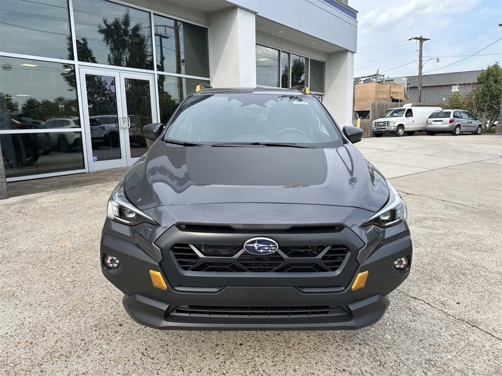 Gray 2025 Subaru Crosstrek Wilderness AWD Lineartronic CVT 2.5L 4-Cylinder DOHC 16V 4-Wheel Disc Brakes, 6 Speakers, ABS brakes, Air Conditioning, Alloy wheels, AM/FM radio: SiriusXM, Anti-whiplash front head restraints, Auto High-beam Headlights, Automatic temperature control, Brake assist, Bumpers: body-color, Driver door bin, Driver vanity mirror, Dual front impact airbags, Dual front side impact airbags, Electronic Stability Control, Emergency communication system, Exterior Parking Camera Rear, Four wheel independent suspension, Front anti-roll bar, Front Bucket Seats, Front Center Armrest, Front dual zone A/C, Front fog lights, Front reading lights, Fully automatic headlights, Heated door mirrors, Heated Front Bucket Seats, Heated front seats, Illuminated entry, Knee airbag, Leather Shift Knob, Leather steering wheel, Low tire pressure warning, Occupant sensing airbag, Outside temperature display, Overhead airbag, Overhead console, Panic alarm, Passenger door bin, Passenger vanity mirror, Power door mirrors, Power steering, Power windows, Radio data system, Radio: Subaru 11.6" Multimedia Plus System, Rear anti-roll bar, Rear seat center armrest, Rear window defroster, Rear window wiper, Remote keyless entry, Security system, Speed control, Speed-sensing steering, Split folding rear seat, Spoiler, Steering wheel mounted audio controls, Tachometer, Telescoping steering wheel, Tilt steering wheel, Traction control, Trip computer, Turn signal indicator mirrors, Variably intermittent wipers, Wheels: 17" x 7.0" J Matte Black Aluminum-Alloy, Wilderness StarTex Upholstery.