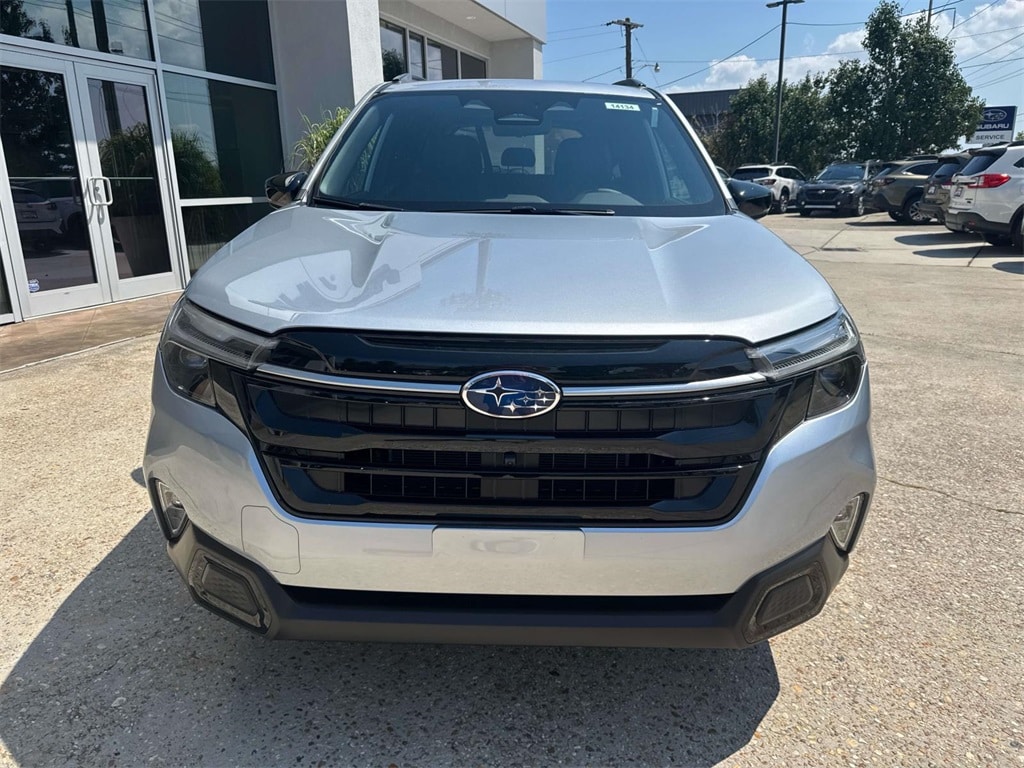 Ice Silver 2025 Subaru Forester Hybrid Touring AWD Lineartronic CVT 2.5L 4-Cylinder DOHC 16V 11 Speakers, 4-Wheel Disc Brakes, ABS brakes, Air Conditioning, Alloy wheels, AM/FM radio: SiriusXM with 360L, Anti-whiplash front head restraints, Auto High-beam Headlights, Automatic temperature control, Brake assist, Bumpers: body-color, Compass, Driver door bin, Driver vanity mirror, Dual front impact airbags, Dual front side impact airbags, Electronic Stability Control, Emergency communication system: STARLINK Safety and Security (Subscription Required), Exterior Parking Camera Rear, Four wheel independent suspension, Front anti-roll bar, Front Bucket Seats, Front Center Armrest, Front dual zone A/C, Front fog lights, Front reading lights, Fully automatic headlights, harman/kardon® Speakers, Heated & Ventilated Front Bucket Seats, Heated door mirrors, Heated front seats, Heated rear seats, Heated steering wheel, HVAC memory, Illuminated entry, Knee airbag, Low tire pressure warning, Memory seat, Navigation system: TomTom Navigation w/what3words, Occupant sensing airbag, Outside temperature display, Overhead airbag, Overhead console, Panic alarm, Passenger door bin, Passenger vanity mirror, Perforated Leather-Trimmed Upholstery, Power door mirrors, Power driver seat, Power Liftgate, Power moonroof: Panoramic, Power passenger seat, Power steering, Power windows, Radio data system, Radio: Subaru STARLINK 11.6" Multimedia Nav System, Rear anti-roll bar, Rear seat center armrest, Rear window defroster, Rear window wiper, Remote keyless entry, Security system, Speed control, Speed-sensing steering, Split folding rear seat, Spoiler, Standard Model, STARLINK/Apple CarPlay/Android Auto, Steering wheel mounted audio controls, Tachometer, Telescoping steering wheel, Tilt steering wheel, Traction control, Trip computer, Turn signal indicator mirrors, Variably intermittent wipers, Ventilated front seats, Wheels: 19" x 7.5 J Dark Gray Aluminum-Alloy.