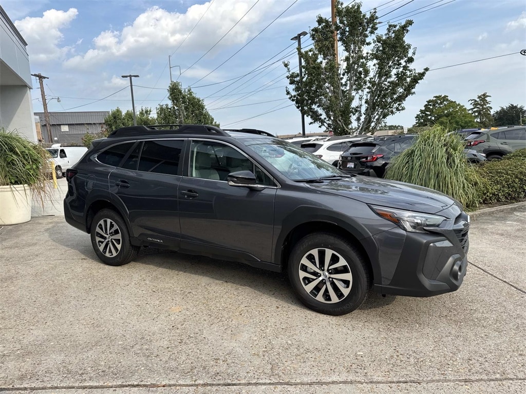 Gray 2025 Subaru Outback Premium AWD CVT Lineartronic 2.5L 4-Cylinder DOHC 16V 4-Wheel Disc Brakes, 6 Speakers, ABS brakes, Air Conditioning, Alloy wheels, AM/FM radio: SiriusXM with 360L, Auto High-beam Headlights, Automatic temperature control, Brake assist, Bumpers: body-color, Cloth Upholstery, Driver door bin, Driver vanity mirror, Dual front impact airbags, Dual front side impact airbags, Electronic Stability Control, Emergency communication system: STARLINK Safety Plus (3-year free trial), Exterior Parking Camera Rear, Four wheel independent suspension, Front anti-roll bar, Front Bucket Seats, Front Center Armrest w/Storage, Front dual zone A/C, Front fog lights, Front reading lights, Fully automatic headlights, Heated door mirrors, Heated Front Bucket Seats, Heated front seats, Illuminated entry, Knee airbag, Leather Shift Knob, Leather steering wheel, Low tire pressure warning, Occupant sensing airbag, Outside temperature display, Overhead airbag, Overhead console, Panic alarm, Passenger door bin, Passenger vanity mirror, Power door mirrors, Power driver seat, Power steering, Power windows, Radio: Subaru STARLINK 11.6" Multimedia Plus Sys, Rear anti-roll bar, Rear seat center armrest, Rear window defroster, Rear window wiper, Remote keyless entry, Roof rack, Security system, Speed control, Speed-sensing steering, Split folding rear seat, Spoiler, Steering wheel mounted audio controls, Tachometer, Telescoping steering wheel, Tilt steering wheel, Traction control, Trip computer, Turn signal indicator mirrors, Variably intermittent wipers, Wheels: 17" x 7J Black Aluminum-Alloy.