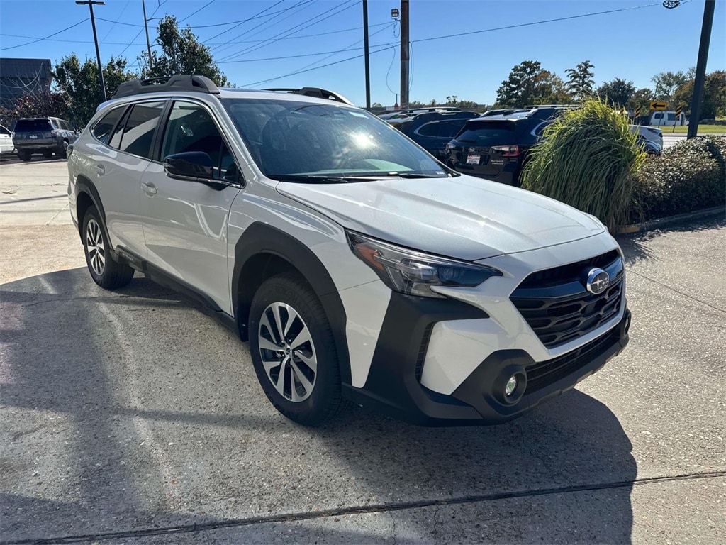 Crystal White Pearl 2025 Subaru Outback Premium AWD CVT Lineartronic 2.5L 4-Cylinder DOHC 16V 4-Wheel Disc Brakes, 6 Speakers, ABS brakes, Air Conditioning, All-Weather Floor Liners, Alloy wheels, AM/FM radio: SiriusXM with 360L, Apple CarPlay & Android Auto, Auto High-beam Headlights, Automatic temperature control, Blind Spot Detection (BSD), Brake assist, BSD & RCTA & Keyless Access & Push Button Start, Bumpers: body-color, Cloth Upholstery, Driver door bin, Driver vanity mirror, Dual front impact airbags, Dual front side impact airbags, Electronic Stability Control, Emergency communication system: MySubaru Safety (3-year free trial), Exterior Parking Camera Rear, Four wheel independent suspension, Front anti-roll bar, Front Bucket Seats, Front Center Armrest w/Storage, Front dual zone A/C, Front fog lights, Front reading lights, Fully automatic headlights, Hands-Free Power Rear Gate, Heated door mirrors, Heated Front Bucket Seats, Heated front seats, Illuminated entry, Keyless Access w/Push Button Start, Knee airbag, Leather Shift Knob, Leather steering wheel, LED Upgrade, Low tire pressure warning, Occupant sensing airbag, Outside temperature display, Overhead airbag, Overhead console, Panic alarm, Passenger door bin, Passenger vanity mirror, Power door mirrors, Power driver seat, Power Moonroof, Power steering, Power windows, Radio: Subaru 11.6" Multimedia Plus System, Radio: Subaru 11.6" Multimedia System w/Navigation, Rear anti-roll bar, Rear Bumper Cover, Rear Cross Traffic Alert (RCTA), Rear seat center armrest, Rear window defroster, Rear window wiper, Remote keyless entry, Roof rack, Security system, Speed control, Speed-sensing steering, Splash Guards, Split folding rear seat, Spoiler, Steering wheel mounted audio controls, Tachometer, Telescoping steering wheel, Tilt steering wheel, Traction control, Trip computer, Turn signal indicator mirrors, Variably intermittent wipers, Wheels: 17" x 7J Black Aluminum-Alloy, Wireless Charger.