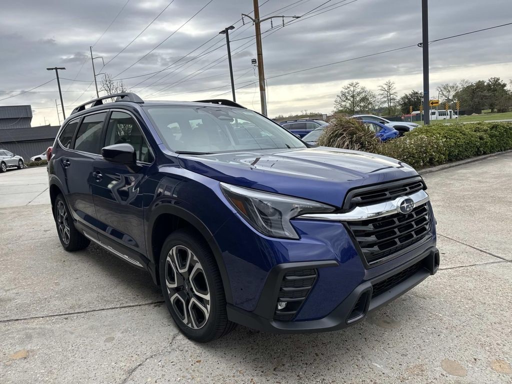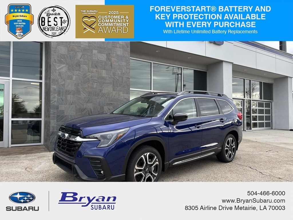 Blue 2026 Subaru Ascent Limited AWD Lineartronic CVT 2.4L 4-Cylinder DOHC 16V 14 Speakers, 3rd row seats: bench, 4-Wheel Disc Brakes, ABS brakes, Air Conditioning, Alloy wheels, AM/FM radio: SiriusXM with 360L, Apple CarPlay & Android Auto, Auto High-beam Headlights, Auto-dimming Rear-View mirror, Automatic temperature control, Brake assist, Bumpers: body-color, Compass, Delay-off headlights, Driver door bin, Driver vanity mirror, Dual front impact airbags, Dual front side impact airbags, Electronic Stability Control, Emergency communication system: MySubaru Companion (5-years free), Exterior Parking Camera Rear, Four wheel independent suspension, Front anti-roll bar, Front Bucket Seats, Front Center Armrest, Front dual zone A/C, Front fog lights, Front reading lights, Fully automatic headlights, Garage door transmitter: HomeLink, harman/kardon® Speakers, Heated door mirrors, Heated Front Bucket Seats, Heated front seats, Heated rear seats, Heated steering wheel, Illuminated entry, Knee airbag, Leather Shift Knob, Leather steering wheel, Low tire pressure warning, Memory seat, Navigation system: MySubaru Navigator (1-year trial), Occupant sensing airbag, Outside temperature display, Overhead airbag, Overhead console, Panic alarm, Passenger door bin, Passenger vanity mirror, Perforated Leather-Trimmed Upholstery, Power door mirrors, Power driver seat, Power Liftgate, Power moonroof, Power passenger seat, Power steering, Power windows, Radio data system, Radio: Subaru 11.6" Multimedia System with Navigation, Rear air conditioning, Rear anti-roll bar, Rear reading lights, Rear window defroster, Rear window wiper, Reclining 3rd row seat, Remote keyless entry, Security system, Speed control, Speed-sensing steering, Split folding rear seat, Spoiler, Steering wheel mounted audio controls, Tachometer, Telescoping steering wheel, Tilt steering wheel, Traction control, Trip computer, Turn signal indicator mirrors, Variably intermittent wipers, Wheels: 20" x 7.5 J Dark Gray Alloy with Machine Finish.
