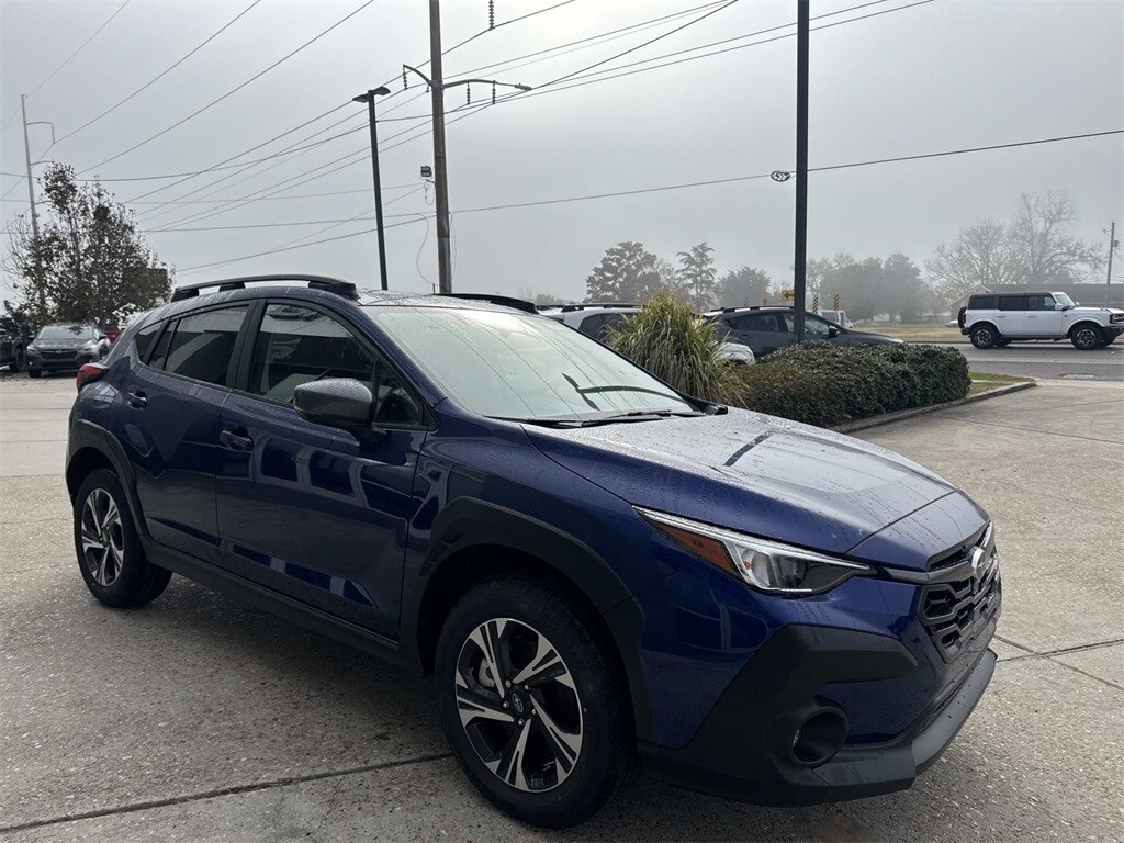 Blue 2026 Subaru Crosstrek Premium AWD Lineartronic CVT 2.5L 4-Cylinder DOHC 16V 4-Wheel Disc Brakes, 6 Speakers, ABS brakes, Air Conditioning, Alloy wheels, AM/FM radio: SiriusXM, Anti-whiplash front head restraints, Auto High-beam Headlights, Automatic temperature control, Brake assist, Bumpers: body-color, Cloth Upholstery, Driver door bin, Driver vanity mirror, Dual front impact airbags, Dual front side impact airbags, Electronic Stability Control, Emergency communication system: MySubaru Companion (5-years free), Exterior Parking Camera Rear, Four wheel independent suspension, Front anti-roll bar, Front Bucket Seats, Front Center Armrest, Front dual zone A/C, Front fog lights, Front reading lights, Fully automatic headlights, Illuminated entry, Knee airbag, Low tire pressure warning, Occupant sensing airbag, Outside temperature display, Overhead airbag, Overhead console, Panic alarm, Passenger door bin, Passenger vanity mirror, Power door mirrors, Power steering, Power windows, Radio data system, Radio: Subaru 11.6" Multimedia Plus System, Rear anti-roll bar, Rear seat center armrest, Rear side impact airbag, Rear window defroster, Rear window wiper, Remote keyless entry, Security system, Speed control, Speed-sensing steering, Split folding rear seat, Spoiler, Steering wheel mounted audio controls, Tachometer, Telescoping steering wheel, Tilt steering wheel, Traction control, Trip computer, Turn signal indicator mirrors, Variably intermittent wipers, Wheels: 17" x 7.0" J Machine Finish Aluminum-Alloy.