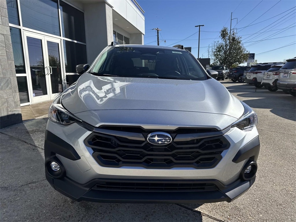 Ice Silver 2026 Subaru Crosstrek Premium AWD Lineartronic CVT 2.5L 4-Cylinder DOHC 16V 4-Wheel Disc Brakes, 6 Speakers, ABS brakes, Air Conditioning, Alloy wheels, AM/FM radio: SiriusXM, Anti-whiplash front head restraints, Auto High-beam Headlights, Automatic temperature control, Brake assist, Bumpers: body-color, Cloth Upholstery, Driver door bin, Driver vanity mirror, Dual front impact airbags, Dual front side impact airbags, Electronic Stability Control, Emergency communication system: MySubaru Companion (5-years free), Exterior Parking Camera Rear, Four wheel independent suspension, Front anti-roll bar, Front Bucket Seats, Front Center Armrest, Front dual zone A/C, Front fog lights, Front reading lights, Fully automatic headlights, Illuminated entry, Knee airbag, Low tire pressure warning, Occupant sensing airbag, Outside temperature display, Overhead airbag, Overhead console, Panic alarm, Passenger door bin, Passenger vanity mirror, Power door mirrors, Power steering, Power windows, Radio data system, Radio: Subaru 11.6" Multimedia Plus System, Rear anti-roll bar, Rear seat center armrest, Rear side impact airbag, Rear window defroster, Rear window wiper, Remote keyless entry, Security system, Speed control, Speed-sensing steering, Split folding rear seat, Spoiler, Steering wheel mounted audio controls, Tachometer, Telescoping steering wheel, Tilt steering wheel, Traction control, Trip computer, Turn signal indicator mirrors, Variably intermittent wipers, Wheels: 17" x 7.0" J Machine Finish Aluminum-Alloy.