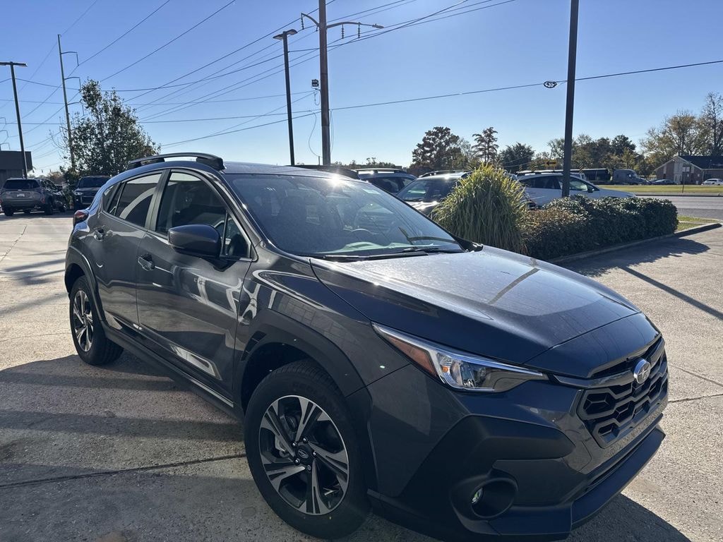 Gray 2026 Subaru Crosstrek Premium AWD Lineartronic CVT 2.5L 4-Cylinder DOHC 16V 4-Wheel Disc Brakes, 6 Speakers, ABS brakes, Air Conditioning, Alloy wheels, AM/FM radio: SiriusXM, Anti-whiplash front head restraints, Auto High-beam Headlights, Automatic temperature control, Brake assist, Bumpers: body-color, Cloth Upholstery, Driver door bin, Driver vanity mirror, Dual front impact airbags, Dual front side impact airbags, Electronic Stability Control, Emergency communication system: MySubaru Companion (5-years free), Exterior Parking Camera Rear, Four wheel independent suspension, Front anti-roll bar, Front Bucket Seats, Front Center Armrest, Front dual zone A/C, Front fog lights, Front reading lights, Fully automatic headlights, Illuminated entry, Knee airbag, Low tire pressure warning, Occupant sensing airbag, Outside temperature display, Overhead airbag, Overhead console, Panic alarm, Passenger door bin, Passenger vanity mirror, Power door mirrors, Power steering, Power windows, Radio data system, Radio: Subaru 11.6" Multimedia Plus System, Rear anti-roll bar, Rear seat center armrest, Rear side impact airbag, Rear window defroster, Rear window wiper, Remote keyless entry, Security system, Speed control, Speed-sensing steering, Split folding rear seat, Spoiler, Steering wheel mounted audio controls, Tachometer, Telescoping steering wheel, Tilt steering wheel, Traction control, Trip computer, Turn signal indicator mirrors, Variably intermittent wipers, Wheels: 17" x 7.0" J Machine Finish Aluminum-Alloy.