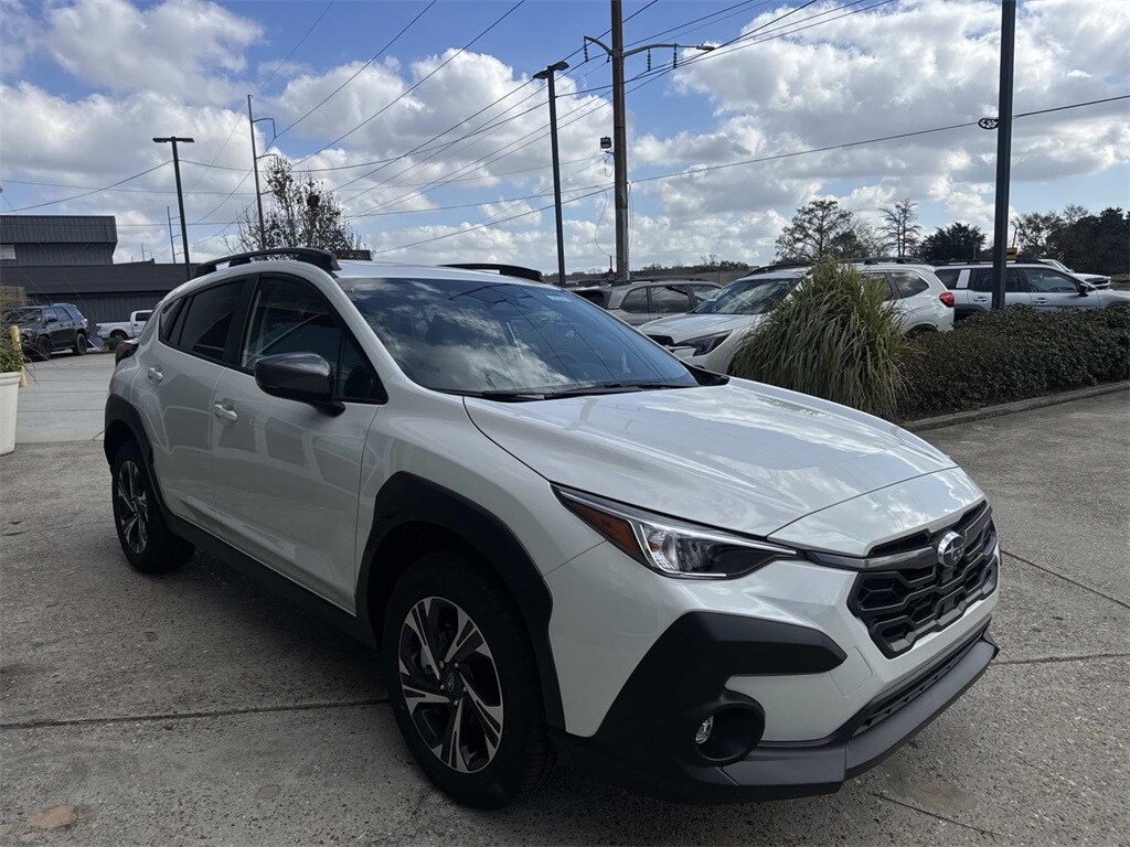 Crystal White Pearl 2026 Subaru Crosstrek Premium AWD Lineartronic CVT 2.5L 4-Cylinder DOHC 16V 10-Way Power Driver's Seat, 4-Wheel Disc Brakes, 6 Speakers, ABS brakes, Air Conditioning, All-Weather Floor Liners, All-Weather Package, Alloy wheels, AM/FM radio: SiriusXM, Anti-whiplash front head restraints, Auto High-beam Headlights, Automatic temperature control, Blind Spot Detection (BSD), Brake assist, BSD/RCTA and All Weather Package and Power Driver Seat and Power Moonroof, Bumpers: body-color, Cargo Cover, Cloth Upholstery, Driver door bin, Driver vanity mirror, Dual front impact airbags, Dual front side impact airbags, Dual-Mode Heated Front Seats, Electronic Stability Control, Emergency communication system: MySubaru Companion (5-years free), Exterior Parking Camera Rear, Four wheel independent suspension, Front anti-roll bar, Front Bucket Seats, Front Center Armrest, Front dual zone A/C, Front fog lights, Front reading lights, Fully automatic headlights, Heated Power Exterior Mirrors, Illuminated entry, Knee airbag, LED Upgrade, Low tire pressure warning, Occupant sensing airbag, Outside temperature display, Overhead airbag, Overhead console, Panic alarm, Passenger door bin, Passenger vanity mirror, Power door mirrors, Power Moonroof, Power steering, Power windows, Radio data system, Radio: Subaru 11.6" Multimedia Plus System, Rear anti-roll bar, Rear Cross-Traffic Alert (RCTA) System, Rear Gate Assist Handle, Rear Gate Light, Rear seat center armrest, Rear side impact airbag, Rear window defroster, Rear window wiper, Remote keyless entry, Security system, Speed control, Speed-sensing steering, Split folding rear seat, Spoiler, Steering wheel mounted audio controls, Tachometer, Telescoping steering wheel, Tilt steering wheel, Traction control, Trip computer, Turn signal indicator mirrors, Variably intermittent wipers, Wheels: 17" x 7.0" J Machine Finish Aluminum-Alloy, Windshield De-Icer Wipers.