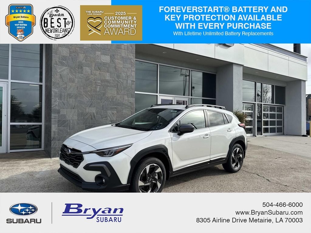 White 2026 Subaru Crosstrek Limited AWD Lineartronic CVT 2.5L 4-Cylinder DOHC 16V 4-Wheel Disc Brakes, 6 Speakers, ABS brakes, Air Conditioning, Alloy wheels, AM/FM radio: SiriusXM with 360L, Anti-whiplash front head restraints, Auto High-beam Headlights, Automatic temperature control, Brake assist, Bumpers: body-color, Driver door bin, Driver vanity mirror, Dual front impact airbags, Dual front side impact airbags, Electronic Stability Control, Emergency communication system: MySubaru Companion (5-years free), Exterior Parking Camera Rear, Four wheel independent suspension, Front anti-roll bar, Front Bucket Seats, Front Center Armrest, Front dual zone A/C, Front fog lights, Front reading lights, Fully automatic headlights, Heated door mirrors, Heated Front Bucket Seats, Heated front seats, Heated steering wheel, Illuminated entry, Knee airbag, Leather Shift Knob, Leather steering wheel, Leather-Trimmed Upholstery, Low tire pressure warning, Occupant sensing airbag, Outside temperature display, Overhead airbag, Overhead console, Panic alarm, Passenger door bin, Passenger vanity mirror, Power door mirrors, Power driver seat, Power steering, Power windows, Radio data system, Radio: Subaru 11.6" Multimedia Plus System, Rear anti-roll bar, Rear seat center armrest, Rear side impact airbag, Rear window defroster, Rear window wiper, Remote keyless entry, Security system, Speed control, Speed-sensing steering, Split folding rear seat, Spoiler, Steering wheel mounted audio controls, Tachometer, Telescoping steering wheel, Tilt steering wheel, Traction control, Trip computer, Turn signal indicator mirrors, Variably intermittent wipers, Wheels: 18" x 7.0" J Machine Finish Aluminum-Alloy.