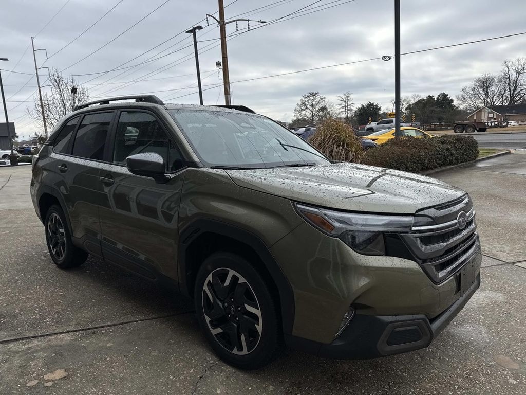 Autumn Green Metallic 2026 Subaru Forester Limited AWD Lineartronic CVT 2.5L 4-Cylinder DOHC 16V 4-Wheel Disc Brakes, 6 Speakers, ABS brakes, Air Conditioning, All-Weather Floor Liners, Alloy wheels, AM/FM radio: SiriusXM with 360L, Anti-whiplash front head restraints, Auto High-beam Headlights, Auto-Dimming Exterior Mirror with Approach Light, Auto-Dimming Mirror with Compass and HomeLink, Automatic temperature control, Brake assist, Bumpers: body-color, Cargo Tray, Driver door bin, Driver vanity mirror, Dual front impact airbags, Dual front side impact airbags, Electronic Stability Control, Emergency communication system: MySubaru Companion (5-years free), Exterior Parking Camera Rear, Four wheel independent suspension, Front anti-roll bar, Front Bucket Seats, Front Center Armrest, Front dual zone A/C, Front fog lights, Front reading lights, Fully automatic headlights, Harman/Kardon Speaker System and Navigation and Reverse Automatic Braking, Heated door mirrors, Heated Front Bucket Seats, Heated front seats, Heated steering wheel, Illuminated entry, Knee airbag, Leather steering wheel, LED Upgrade, Low tire pressure warning, Occupant sensing airbag, Outside temperature display, Overhead airbag, Overhead console, Panic alarm, Passenger door bin, Passenger vanity mirror, Perforated Leather-Trimmed Upholstery, Power door mirrors, Power driver seat, Power Liftgate, Power moonroof: Panoramic, Power passenger seat, Power steering, Power windows, Radio data system, Radio: Subaru 11.6" Multimedia Navigation System, Radio: Subaru 11.6" Multimedia Plus System, Rain sensing wipers, Rear anti-roll bar, Rear seat center armrest, Rear Seatback Protector, Rear window defroster, Rear window wiper, Remote keyless entry, Reverse Automatic Braking (RAB) System, Security system, Speed control, Speed-sensing steering, Split folding rear seat, Spoiler, Steering wheel mounted audio controls, Tachometer, Telescoping steering wheel, Tilt steering wheel, Traction control, Trip computer, Turn signal indicator mirrors, Variably intermittent wipers, Wheels: 18" x 7.0 J Dark Metallic Aluminum-Alloy.