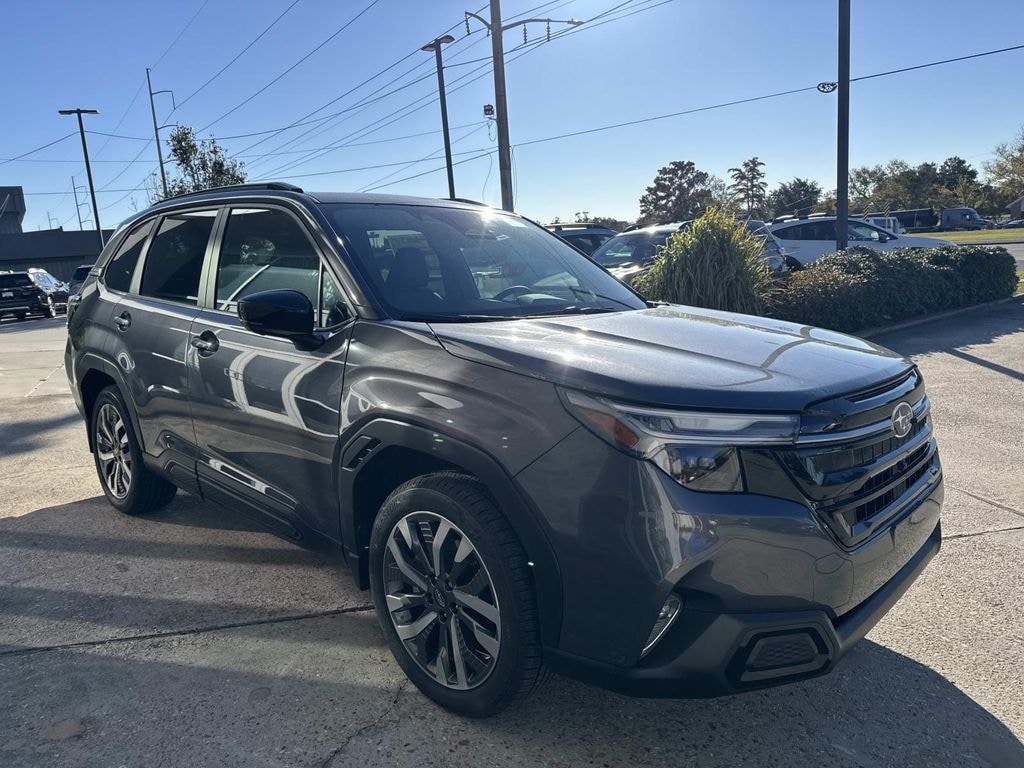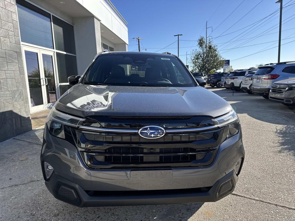 Gray 2026 Subaru Forester Touring AWD Lineartronic CVT 2.5L 4-Cylinder DOHC 16V 11 Speakers, 4-Wheel Disc Brakes, ABS brakes, Air Conditioning, Alloy wheels, AM/FM radio: SiriusXM with 360L, Anti-whiplash front head restraints, Auto High-beam Headlights, Automatic temperature control, Brake assist, Bumpers: body-color, Driver door bin, Driver vanity mirror, Dual front impact airbags, Dual front side impact airbags, Electronic Stability Control, Emergency communication system: MySubaru Companion (5-years free), Exterior Parking Camera Rear, Four wheel independent suspension, Front anti-roll bar, Front Bucket Seats, Front Center Armrest, Front dual zone A/C, Front fog lights, Front reading lights, Fully automatic headlights, harman/kardon® Speakers, Heads-Up Display, Heated and Ventilated Front Bucket Seats, Heated door mirrors, Heated front seats, Heated rear seats, Heated steering wheel, HVAC memory, Illuminated entry, Knee airbag, Leather Shift Knob, Leather steering wheel, Low tire pressure warning, Memory seat, Navigation System, Occupant sensing airbag, Outside temperature display, Overhead airbag, Overhead console, Panic alarm, Passenger door bin, Passenger vanity mirror, Perforated Leather-Trimmed Upholstery, Power door mirrors, Power driver seat, Power Liftgate, Power moonroof: Panoramic, Power passenger seat, Power steering, Power windows, Radio data system, Radio: Subaru 11.6" Multimedia Navigation System, Rain sensing wipers, Rear anti-roll bar, Rear seat center armrest, Rear window defroster, Rear window wiper, Remote keyless entry, Security system, Speed control, Speed-sensing steering, Split folding rear seat, Spoiler, Steering wheel mounted audio controls, Tachometer, Telescoping steering wheel, Tilt steering wheel, Traction control, Trip computer, Turn signal indicator mirrors, Variably intermittent wipers, Ventilated front seats, Wheels: 19" x 7.5 J Dark Gray Aluminum-Alloy.
